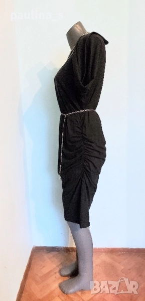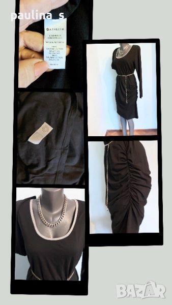 3️⃣. Колаж / L / 2XL "Athleta". Цената е крайна, без пазарлъци 29,99лв. Една бройка е, без дефекти и етикет. Еластична маркова рокля с асиметричен набор и хастар. Материята е памук, модал и ликра и дава възможност да се носи от няколко размера. Моделът е леко втален с миди дължина, с набор в областта на талията и ханша. Без дефекти, като нова без дефекти и етикет. Ланецът е от стомана, продава се за 19,99лв / 10 евро.