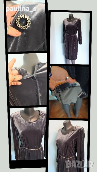 2️⃣. Колаж / Колаж / L / 3XL - Сребриста рокля за повод / party dress по модел на Burda. Цената е крайна 39,99лв / 20 евро. Рокля за повод от еластичен плюшено кадифе, лична изработка по модел на Burda. Цветът е сребърен и се мени на светлината. Материята е еластична и покрива няколко номера. 42 / 44(за бюста) европейски стандарт. Само платът струва 4 пъти повече от посочената цена, без подлепващото, ципа и работата. Обличана е веднъж за Нова година.