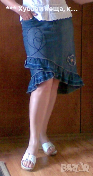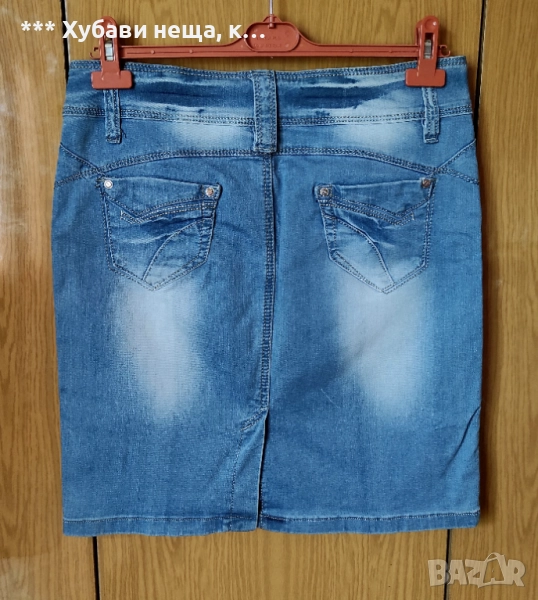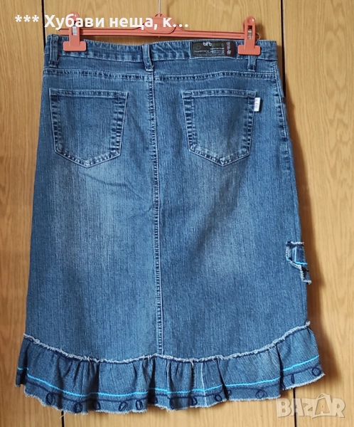 Втората дънкова пола е бохо стил. Стои прекрасно. Има лека еластичност. Мярка М. Няма никакви забележки. Цена 17 лв.