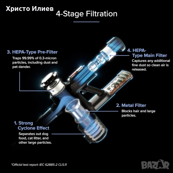 - Високоефективна 4-степенна филтрация: Филтрира 99,99% от частици с размер 0,3 микрона или по-големи частици със запечатана филтрация, като ефективно намалява възможността от вторично замърсяване и алергични симптоми чрез освобождаване на чист въздух. Можете да потърсите ASIN: B09V25N874 за оригиналния филтър.