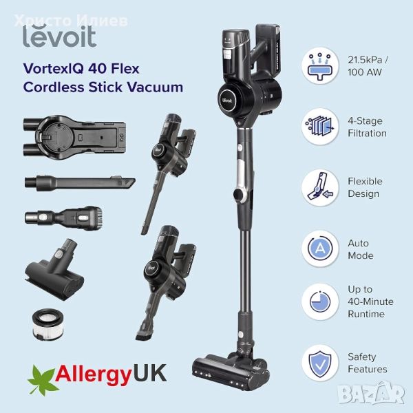 Вертикална прахосмукачка Levoit VortexIQ 40 Flex Безжична