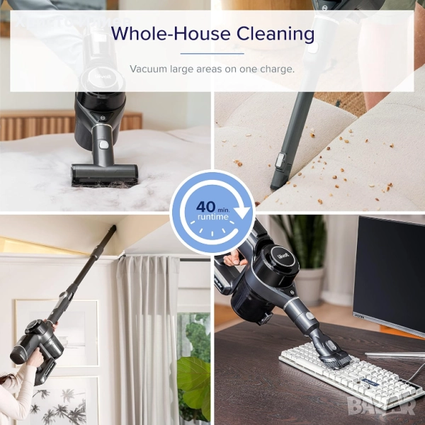 Почистете целия си дом бързо и лесно с Levoit VortexIQ™ 40 Flex. Безжичната прахосмукачка е оборудвана с DPC Technology™ (технология за динамичен контрол на мощността), която анализира нивото на замърсяване и автоматично регулира режима на работа, а системата за 4-степенна филтрация улавя до 99,99% от частиците с размер до 0,3 микрона, като по този начин гарантира чиста и здравословна среда.