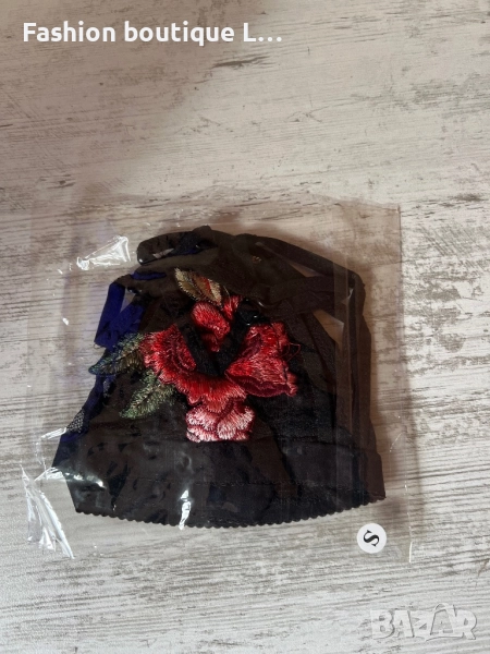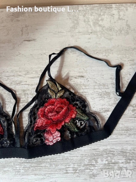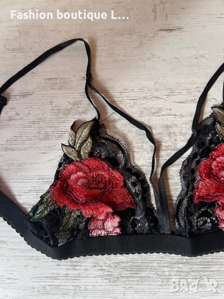 Ново черно дантелено бюстие с бродирано цвете и регулиращи се презрамки S , M , L , XL размер → Обява 52196991