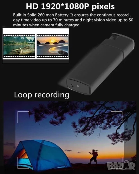 Малка и дискретна камера скрита с FullHD резолюция в професионално изработена електрическа запалка.