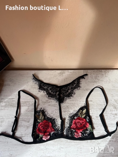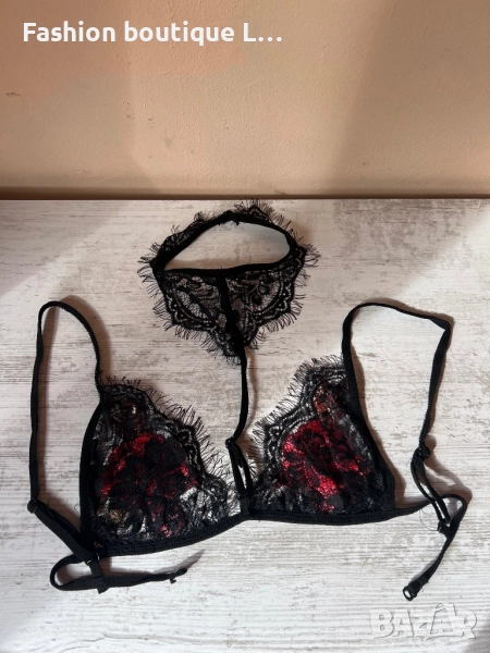 Ново черно дантелено бюстие с чокър на врата и бродерия S , M , L , XL налични размери 🖤❤️🖤❤️ → Обява 52197129