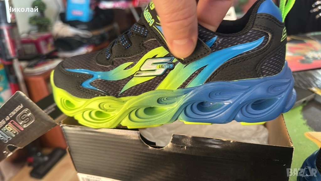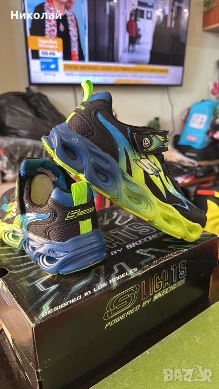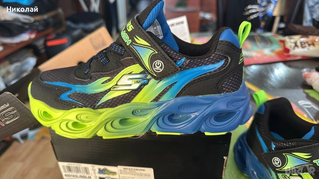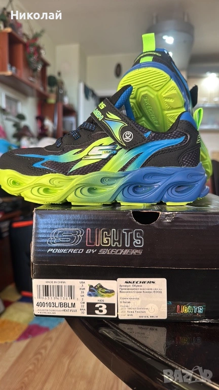Гъвкава външна подметка от гума;Маратонките S Lights-Thermo-Flash-Heat-Flux са част от ексклузивната колeкция Skechers - Lights. Свежата комбинация от цветове, елементи напомнящи светкавици и 3D акценти, правят модела неповторим. Те ще удовлетворят нуждите на бързите и подвижни малчугани