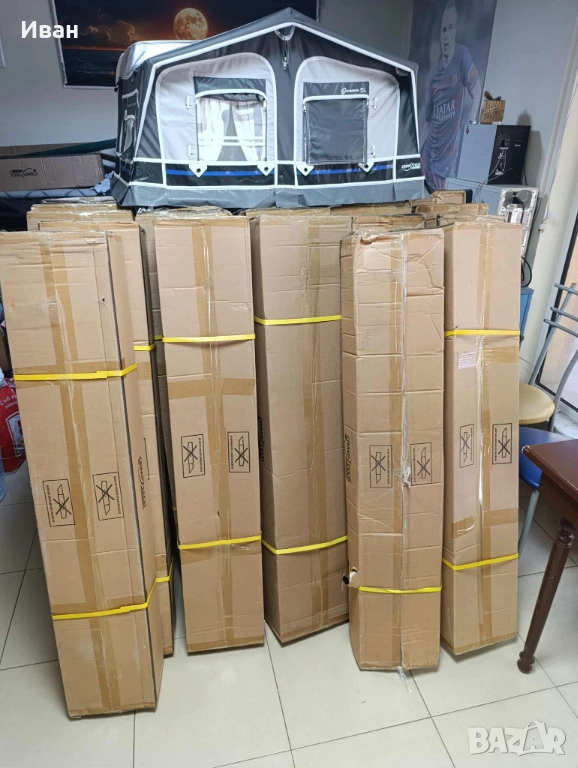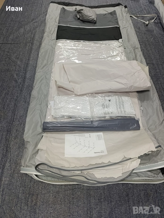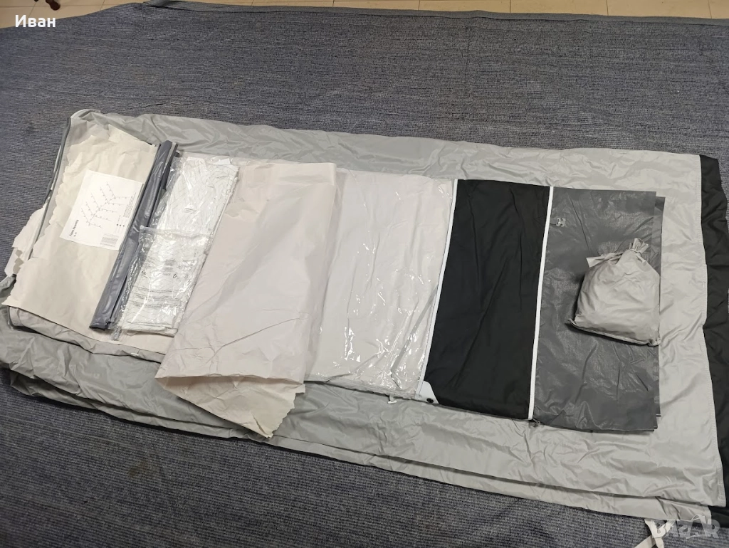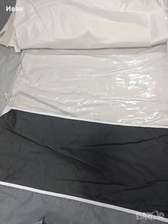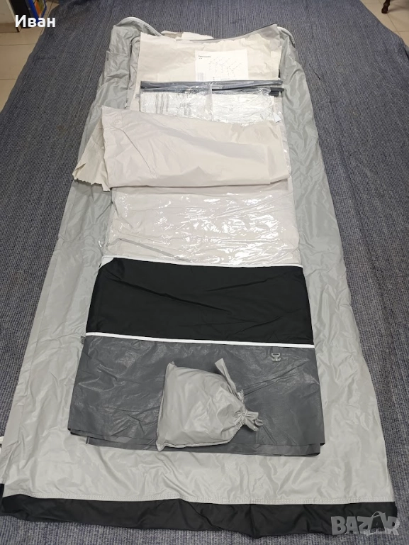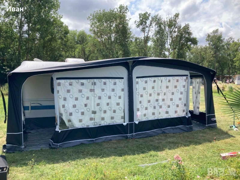 Дишаща непромокаема материя С двупосочни ципове позволяващи отваряне на всички страници както отгоре-надолу, така и странично. Може да се обособява врата, както отпред така и от двете страни. И четирите страници могат да бъдат частично отворени образувайки веранда или премахнати напълно. Конструкция със стоманени рейки.С комарници.