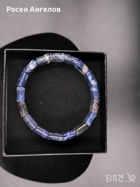 Стилна гривна, изработена от естествени плочки лазурит – камъкът на вътрешната хармония и духовната сила. Неговият дълбок син цвят с естествени златисти отблясъци придава изисканост и спокойствие. Лазуритът подпомага интуицията, комуникацията и енергийния баланс.