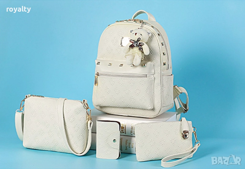 Малка дамска чанта: ширина - 22 см, височина - 20 см, ширина на долната част - 6 см, дължина на презрамката - 110 см.