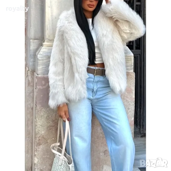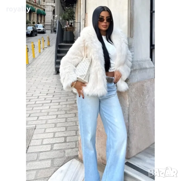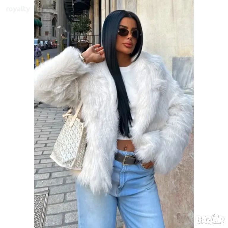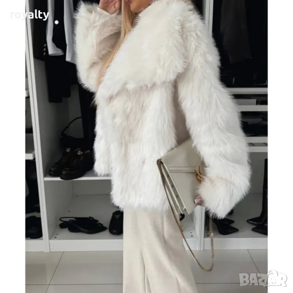 красиво късо палто за зимата средна плътност - отлична имитация на естествена кожа с косъм