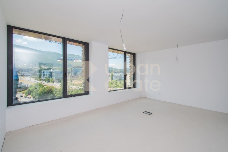 Апартаментът е разположен на ет. 10 и има отлични гледки от всяка стая. Дневната е с четири панорамни прозореца и излаз към балкон. Мастер спалнята е с южно изложение, има два панорамни прозореца и баня с тоалетна. Апартаментът разполага с още една, по-малка спалня, втора баня с тоалетна и мокро помещение.