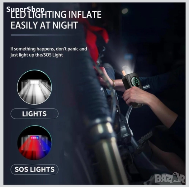 Вграден мощен компресор 150PSI за напомпване на гуми