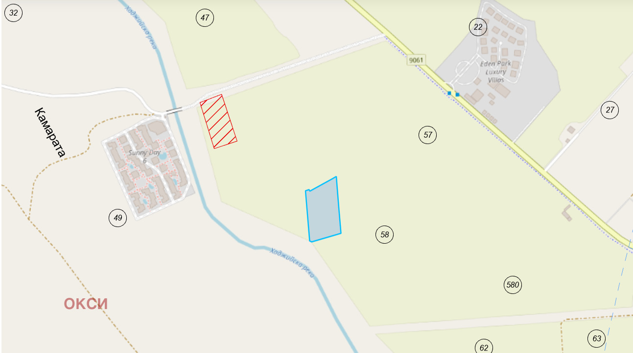 OXY представя на Вашето внимание парцел (земеделска земя), разположен в непосредствена близост до комплексите Sunny Day 6 и EDEN PARK Luxury Villas .