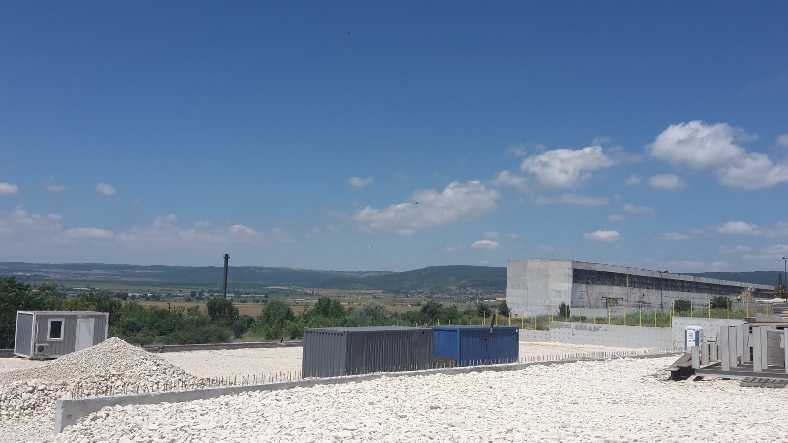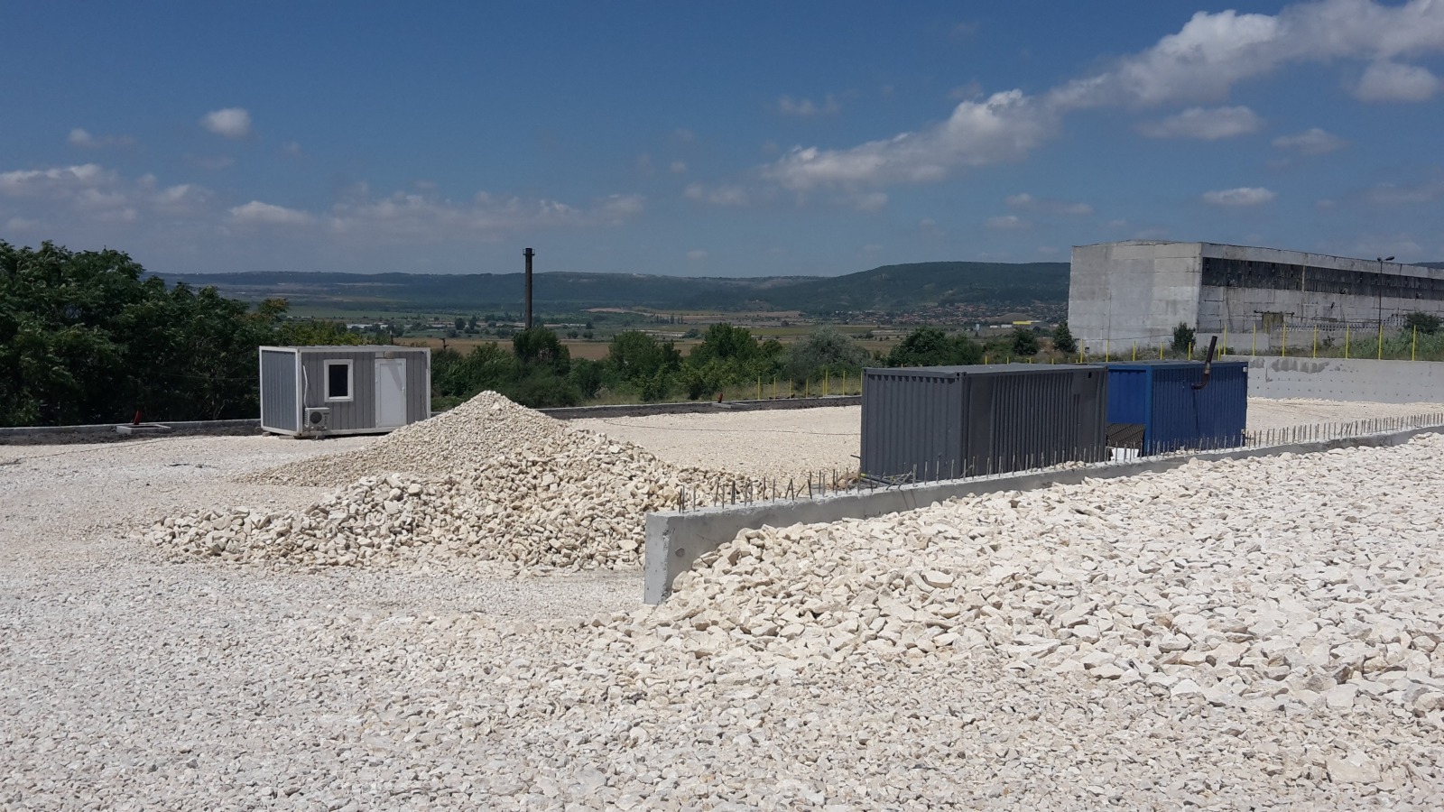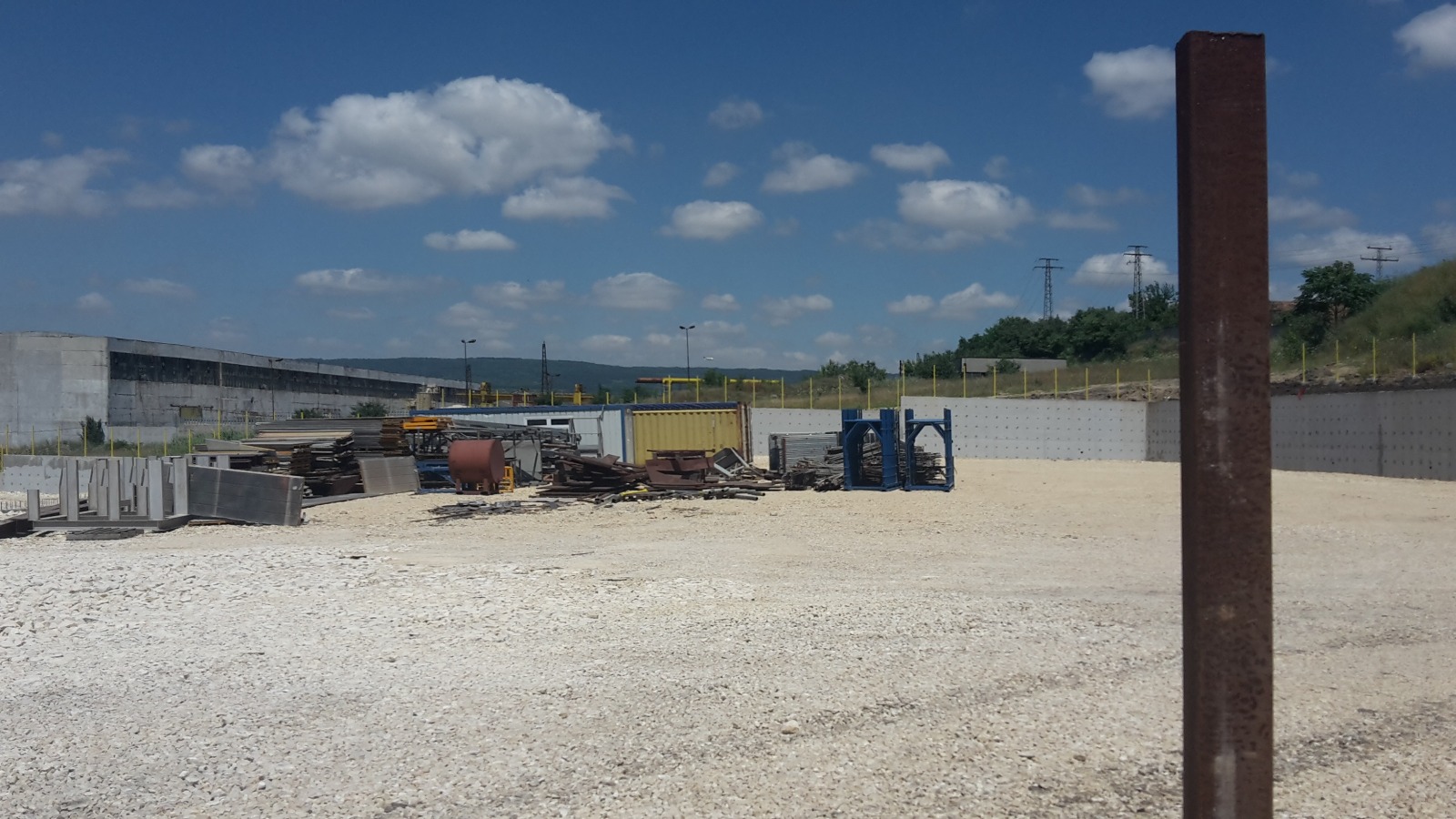 Имотът е терасиран на три нива , като в едната част има изграден закрит метален склад 500 кв.м.