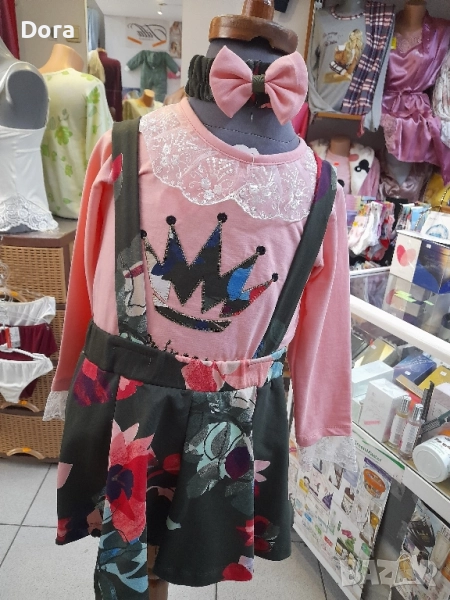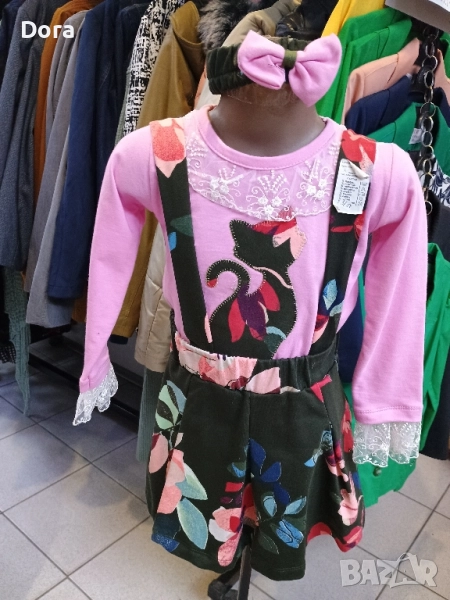 Детски сукман с блузка и лента за глава..Материя памук и мека дантела по деколтето на блузката и маншетчето.Модела с бродерия ,коронка, на гърдичкитее цвят на блузката пудра или корал,а бродерията с ,коте, е приятно розаво.Много кокетно тоалетче за младите госпожици.Може да намерите във Варна физическия магазин ул.Др.Пискюлиев ном.6 или на телефона изписан долу.Заповядайте,очакваме ви.