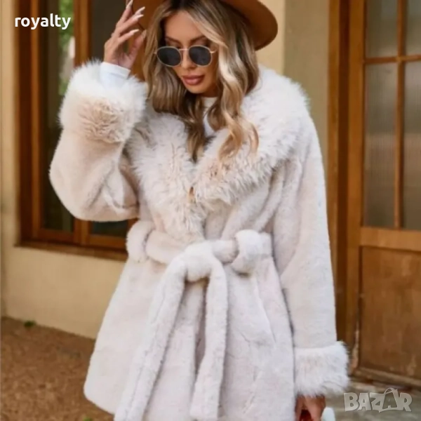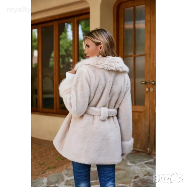 Дамско еко-палто с колан и шал яка