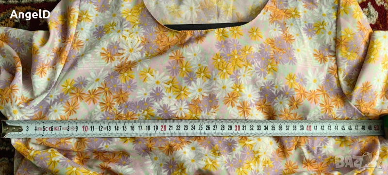 Нова елегантна рокля с 7/8 ръкав в свеж десен на цветя и набор в кръста. Гръдна обиколка 100 см. Колана е подвижен. Закупих я в промо пакет, но се оказа, че ми е малка.