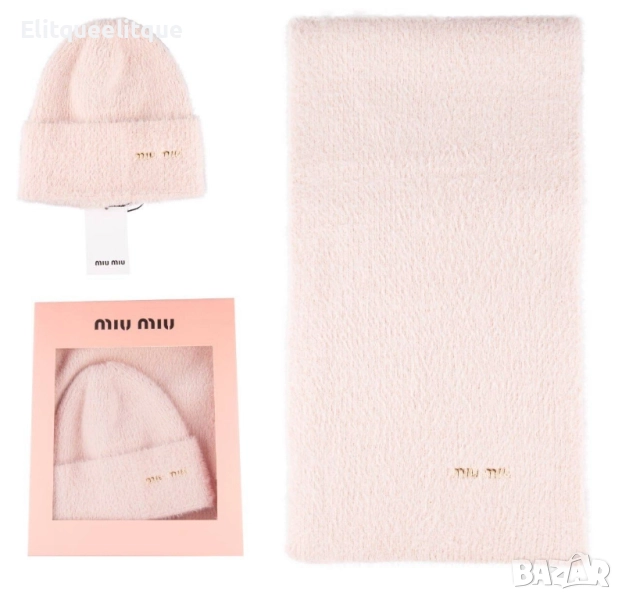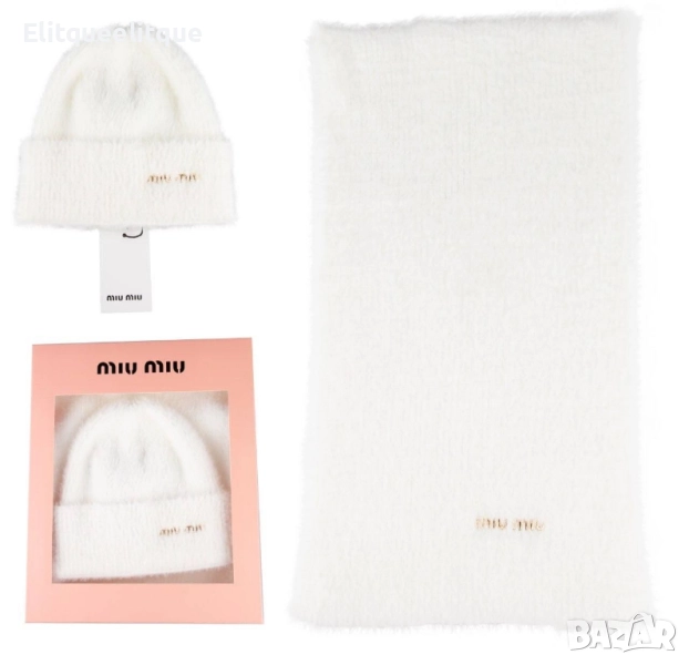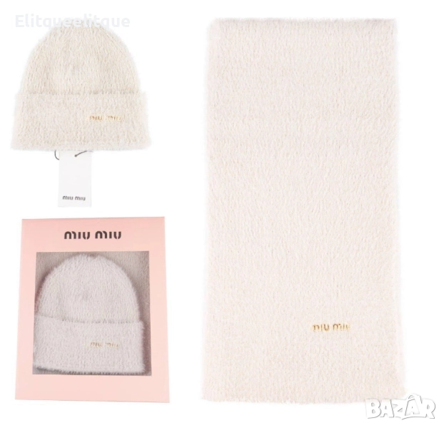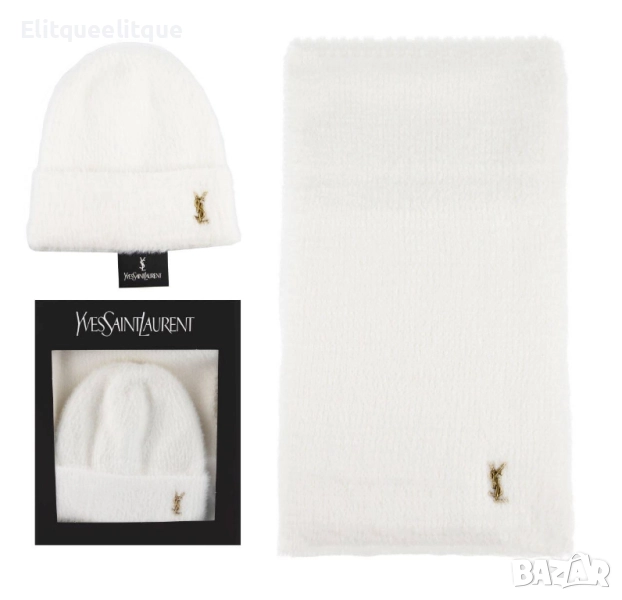 комплект пухена шапка и шал в кутия ysl saint laurent celine moncler loewe