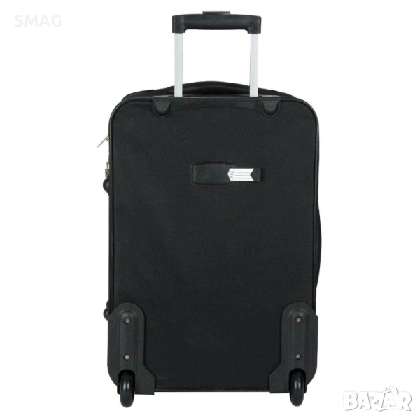 Елегантен и функционален куфар в класически черен цвят – идеален избор за всяко пътуване. Изработен от издръжлив полиестер, който осигурява лекота и защита на багажа. Оборудван е с 3 удобни дръжки и 2 стабилни колелца за лесно придвижване и комфорт при транспортиране. Подходящ както за кратки, така и за по-дълги пътувания.