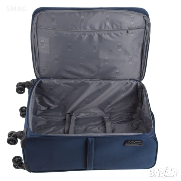 Компактен и удобен куфар с въртящи се колелца, създаден за лесно и комфортно пътуване. Изработен от лек и здрав найлон, който осигурява защита на багажа и дълготрайност при честа употреба. Разполага с три външни отделения с цип за бърз достъп до важни вещи и три дръжки за по-удобно носене. Подходящ за самолетни и кратки пътувания.
