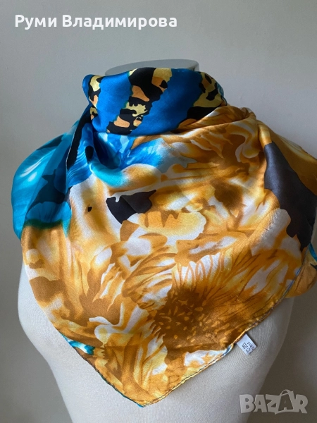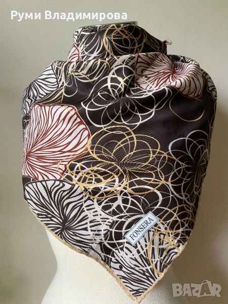 Квадратен шал/ кърпа за глава от коприна, сатен, вискоза