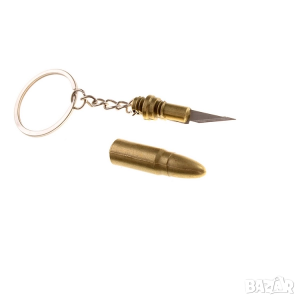 Ключодържател патрон със скрит мини нож – метален, златист → Обява 52200474