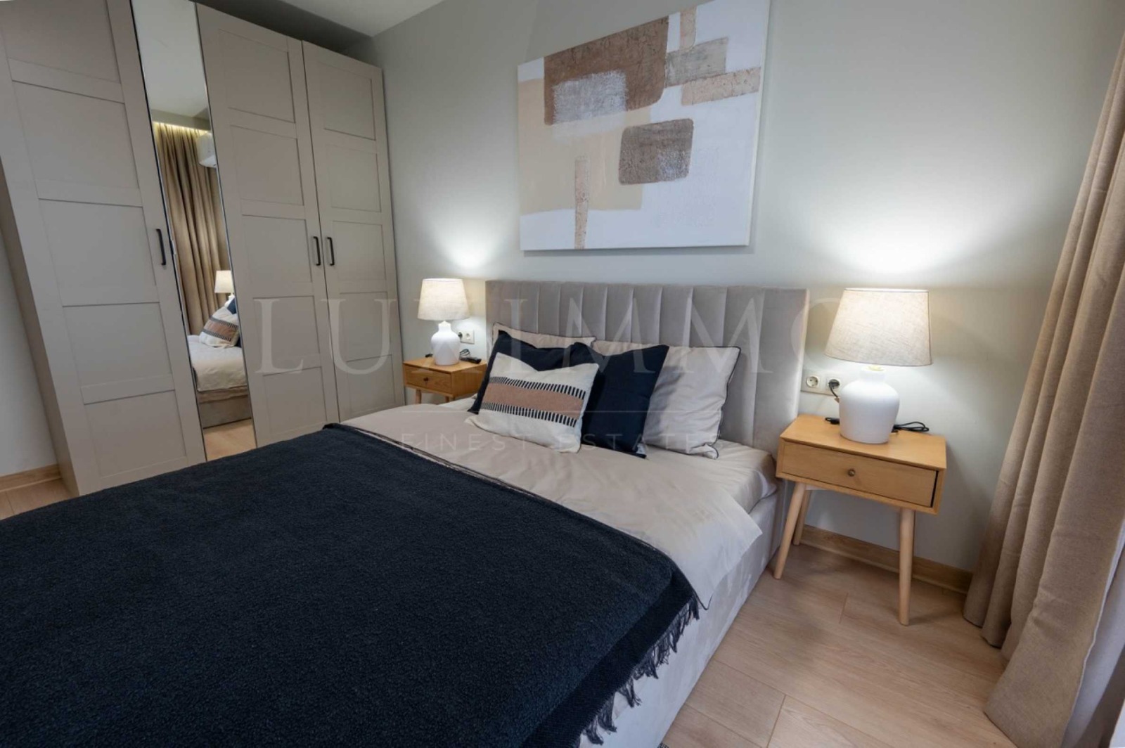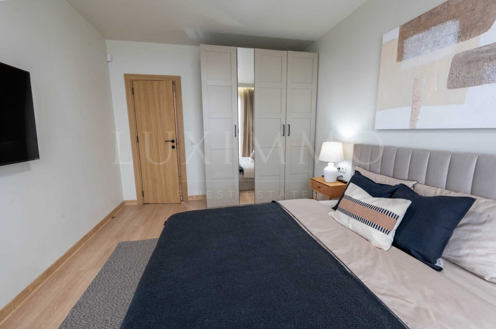 Бутиков апартамент за продажба в жилищен комплекс KANSO. Апартаментът е напълно завършен и обзаведен с внимание към всеки детайл, използвани са качествени мебели и уреди. Интериорът е решен в светли и топли цветове, които създават усещане за уют и хармония.