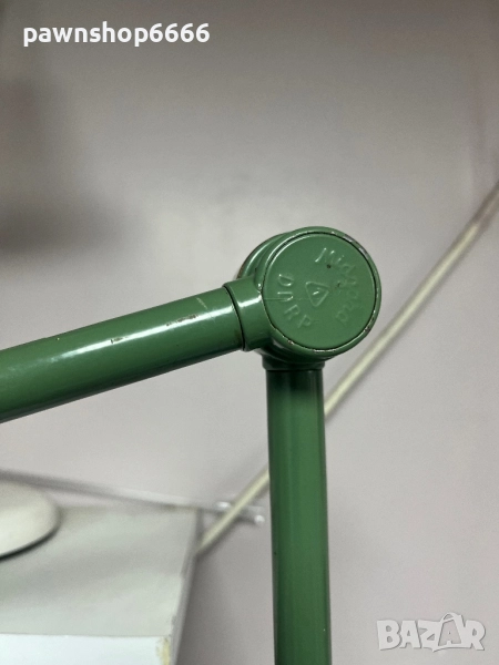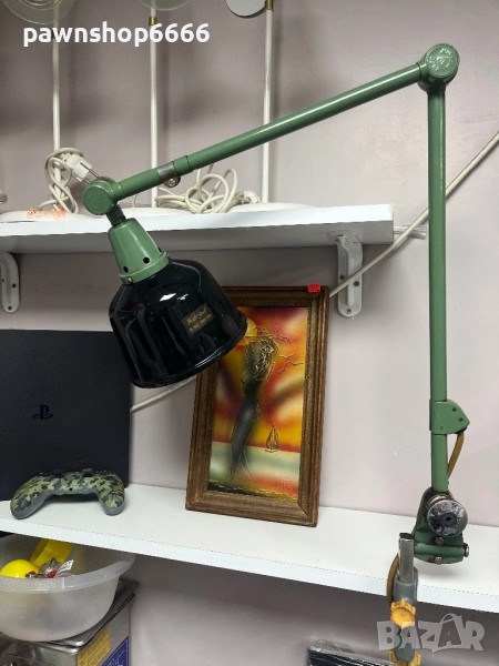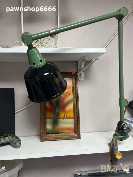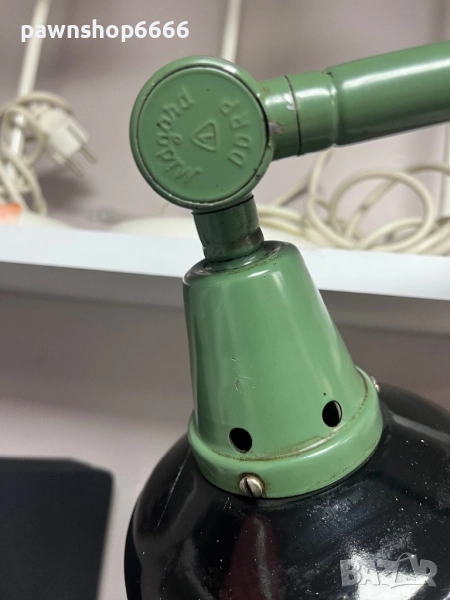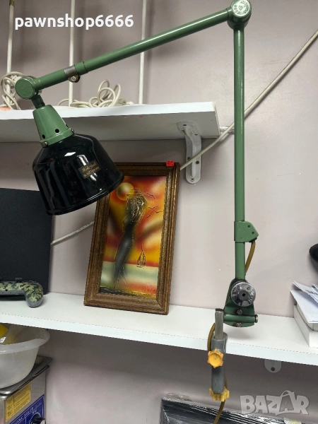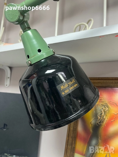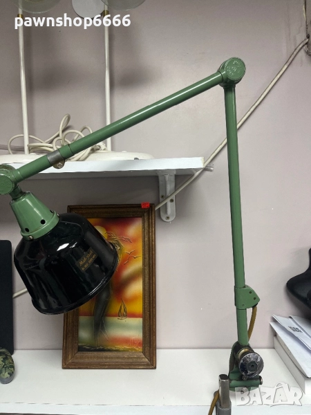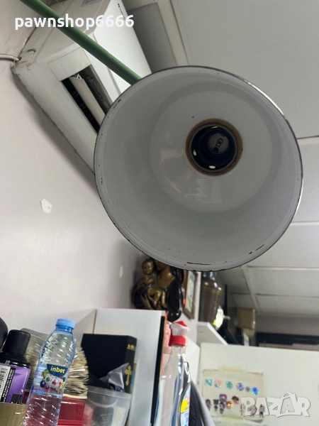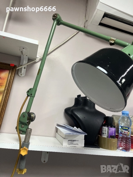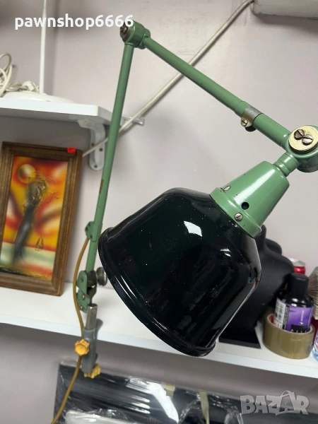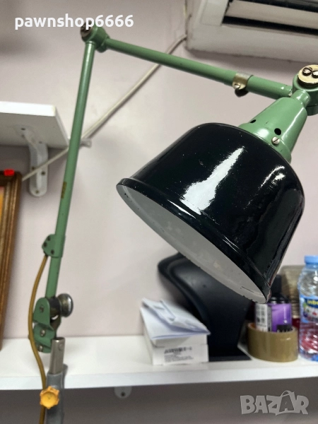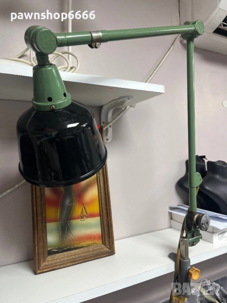 В отлично работно състояние, тези лампи първоначално са били закрепени към стени и работни плотове във фабрики и работилници, за да бъдат премествани при необходимост за осветяване на работните зони.Все още е в оригиналната си боя и в отлично състояние.Тази лампа използва крушка с винтов цокъл E27.