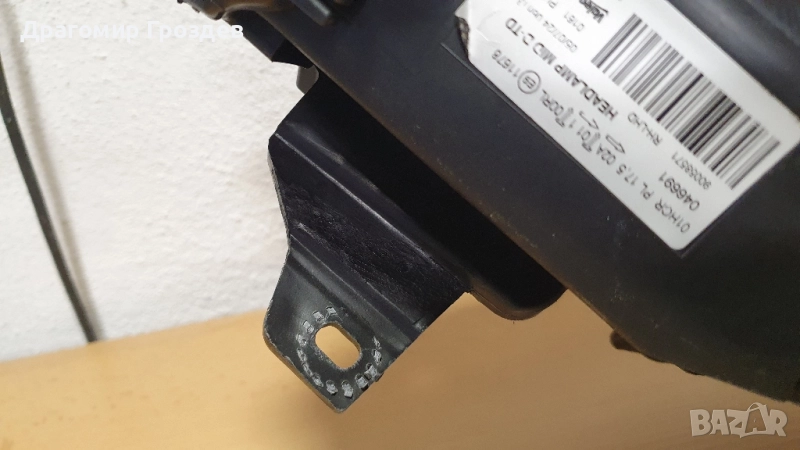 Оригинален халогенен фар в много добро състояние. Един от захватите беше пукнат и е гарантирано качествено ремонтиран.
