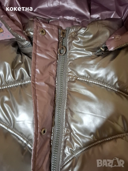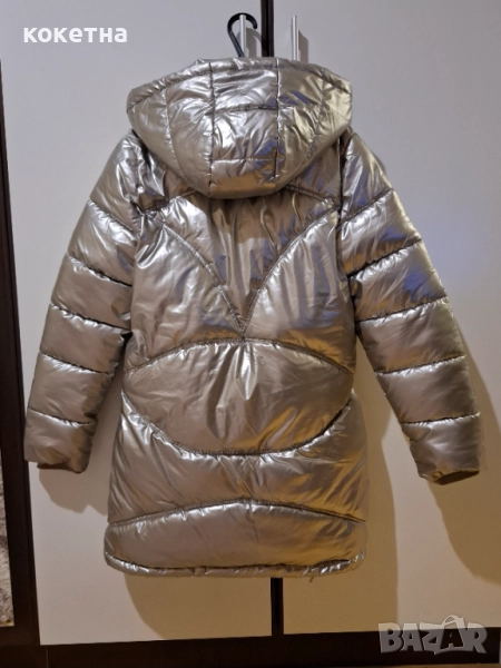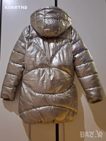 Страхотно зимно яке с което вашето момиче, няма да остане незабелязана. Издължен модел, с меко и топло хастарче, снимала съм на последната снимка. По етикет е за 12 години, но според мен за 9-10години, затова имайте в предвид, описаните от мен размери в см. Дължина на якето 77см, широчина при подмишниците 48см, а при подгъва 55см (при подгъва има опция да се пристегне), дължина на ръкава 57см. Качулката е с цип и се сваля. Цената е крайна, преди да пускате оферти вижте цената на ново такова.