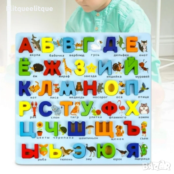 Описание: Ако детето ти трудно запомня буквите, тази дървена дъска с руската азбука и животни превръща ученето в игра. Всяка буква е цветна, придружена от илюстрация и дума, които развиват паметта и концентрацията. Перфектна за първи стъпки в грамотността! Особености: Образователна игра с 33 букви Стимулира моторика и логическо мислене Безопасно дърво, нетоксични бои Подходяща за деца 3+ Дизайн: Ярки цветове, илюстрации на животни и предмети. Размер 30×30×1,5 см – удобна и устойчива. Технически характеристики: Модел: Alphabet Board • №910311 • Материал: дърво • Размер: 30×30×1,5 см • Възраст: 3+