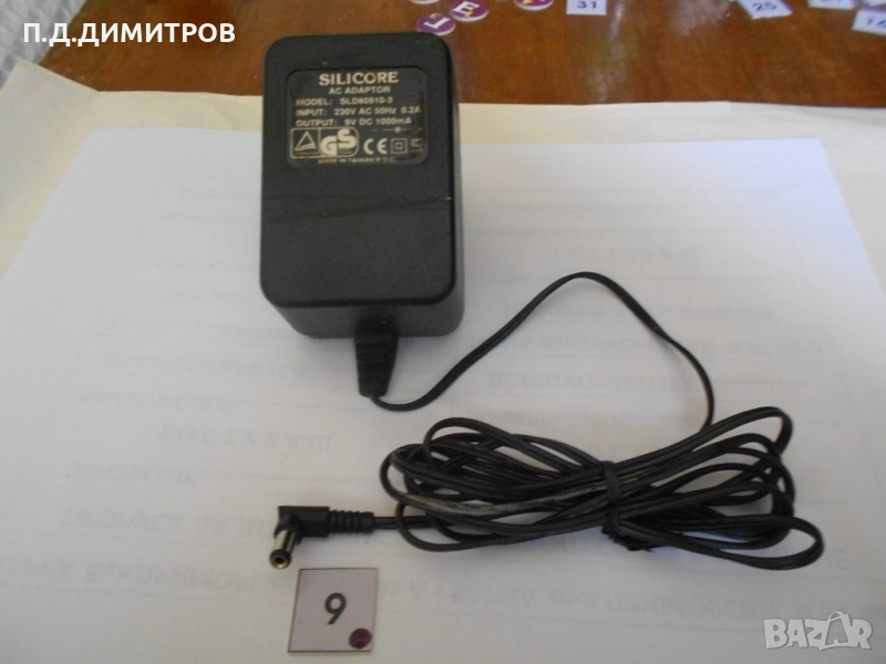 INPUT-230 V AC 50 Hz 0,2 A OUTPUT 9 V DC