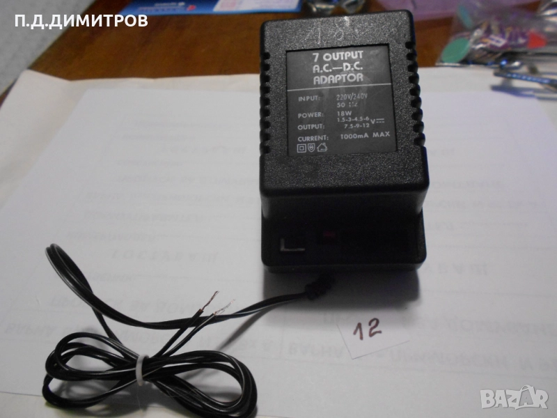 INPUT-230 V AC 50 Hz OUTPUT 7,5 V DC 1000 Ma