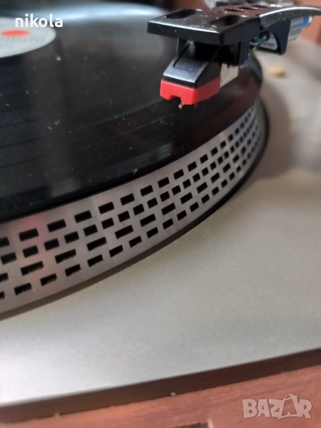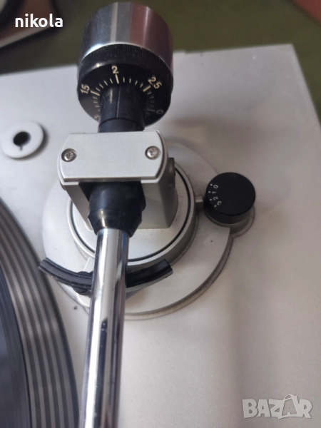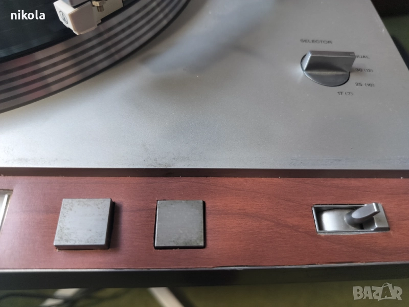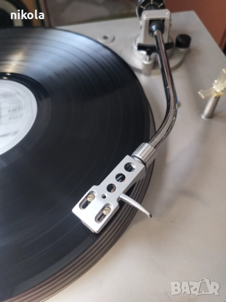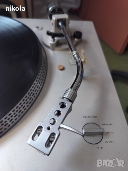 Директ драйф и пълен автомат.Предлагам го с избор на доза и носач:черен и сребрист и доза Аудиотехника -оригинал и такава лицензна.Двете дози са нови.Грамофона може да работи ръчно и автоматично:избира вида на плочата.Капака е леко пуктнат и залепен и пантите не са оригинални.Има малък проблем с лифта при автоматично :рамото не пада плавно но на ръчно няма проблем.въпроси на 0886704976 Никола