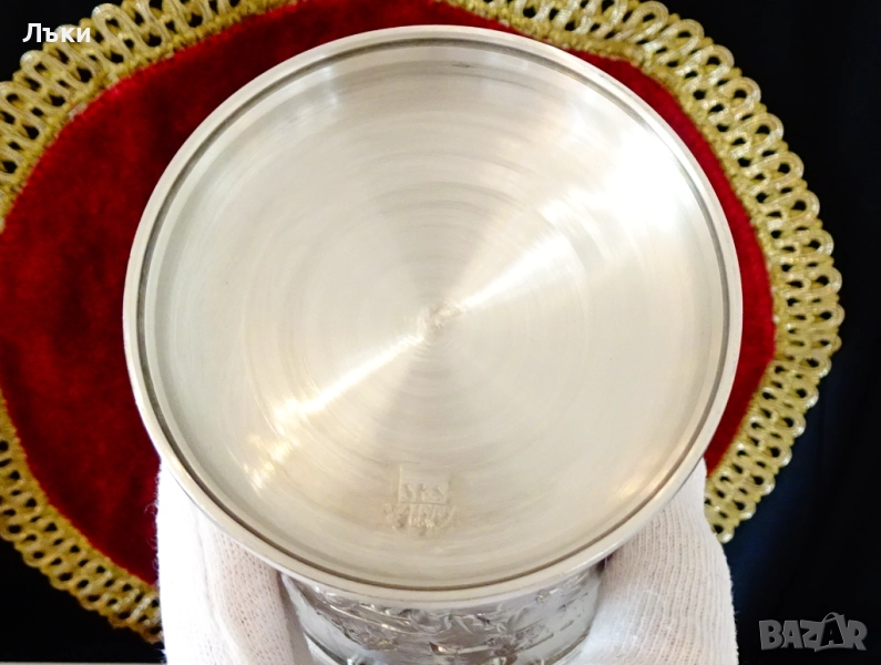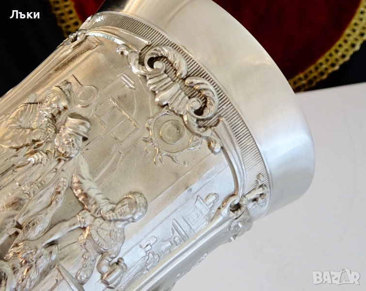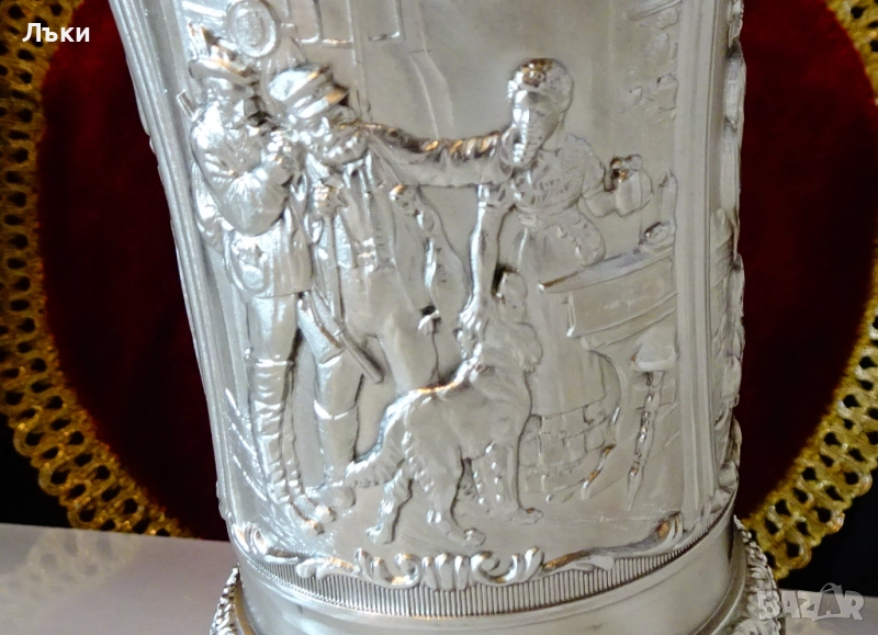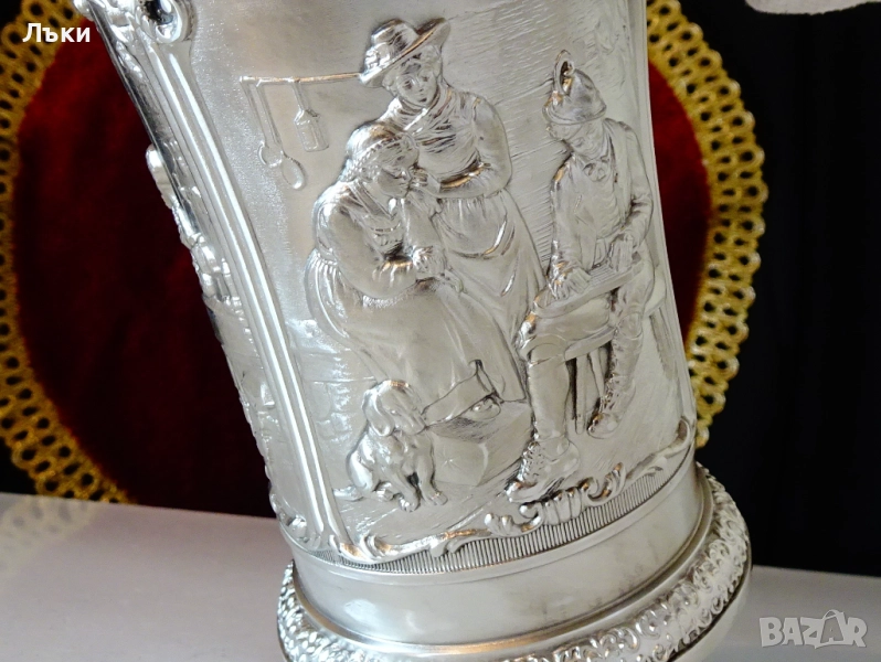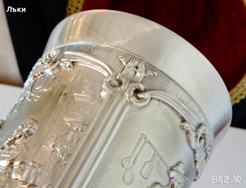 от най-красивите барокови орнаменти.Халбата блести като сребърна от вън и от