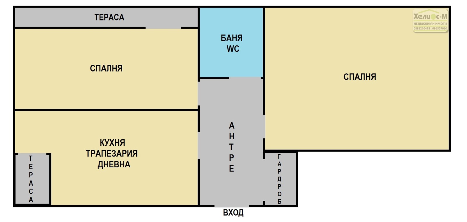 !!! ДВЕ СПАЛНИ !!! PVC ДОГРАМА !!! Преустроен двустаен апартамент в Живовски квартал на гр.Монтана. В близост до училище, детската градина и детска ясла. Четвърти жилищен етаж, не последен, с работещ асансьор. Полезна площ от 67 кв.м. Монолитна, тухлена, сграда. Жилището се състои от антре с вграден гардероб, дневна с трапезария и кухня, две самостоятелни спални, баня с тоалетна и две тераси (на кухня и спалня). Дограмата е подменена с пластмасова. В едната спалня е монтиран климатик. Подови настилки с дюшеме. Изложение ИЗТОК / ЮГ. Мазе с площ 8 кв.м. Изрядни документи за собственост. Ремонтиран покрив на сградата през 2025г. Предстоящ ремонт и на общите части във входа. За повече информация и организиране на оглед: ''ХЕЛИОС-М Брокер недвижими имоти''. Телефони за връзка 0888210428 и 096307060. Агенцията предлага на своите клиенти пълен пакет от консултантски, посреднически и юридически услуги при закупуване, продажба и отдаване под наем на недвижими имоти. На ваше разположение е екип от брокери, адвокати и архитекти с голям опит в сферата на недвижимите имоти. Нашите служители ще изготвят всички необходими документи за нотариалното приключване на сделката. При нас ще получите и съдействие за закупуването на желаният от вас имот чрез банков кредит. Интернет сайт на агенцията: WWW.HELIOS-M.COM