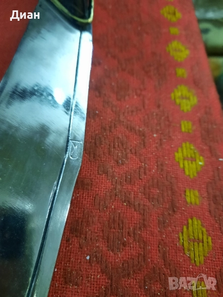 Ножа(44см.) е много красив с уникална дръжка(19см.). От двете страни има маркировки на майстора. В Костенец е направен през 80 те години.