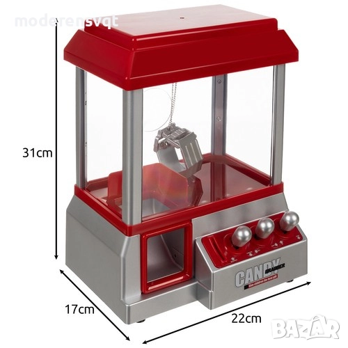РЕАЛИСТИЧНА МАШИНА ЗА ХВЪРЛЕНЕ НА БОНБОНИ - аркадната игра "Candy Fishing" е играчка, вдъхновена от емблематични автомати за лов на награди, които често могат да бъдат намерени по крайбрежните алеи и увеселителни паркове. Предназначена за деца над 3 години , тя е отлична атракция, която въвлича малките деца във вълнуващо забавление. Основната част на играчката е голям, прозрачен контейнер , изработен от висококачествен ABS , в който хвърляме бонбони през кръглия отвор отзад . От лявата страна има допълнителен отвор с капак , който предпазва бонбоните от случайно падане. Покритата конструкция крие механизъм тип "нокът" , който децата могат да управляват с джойстици, движейки го в четири посоки .