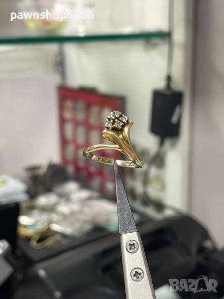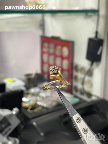 Златен пръстен 14 карата с брилянти 0,12 tcw