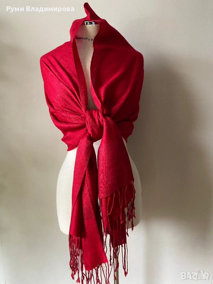 Червен шал от кашмир, коприна, пашмина/ различни видове