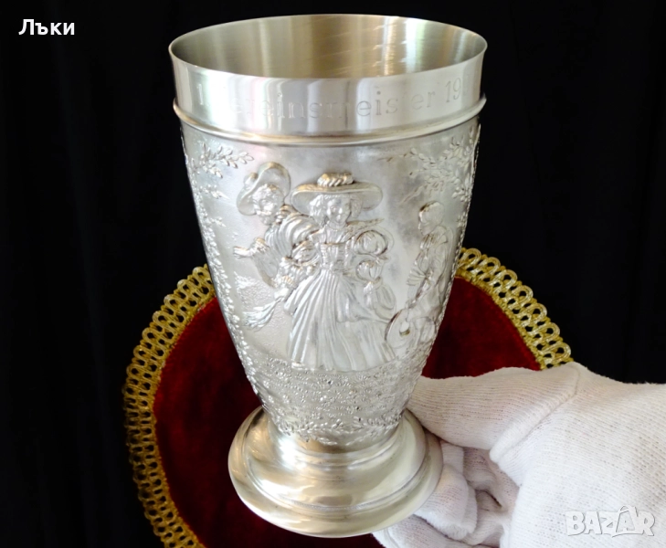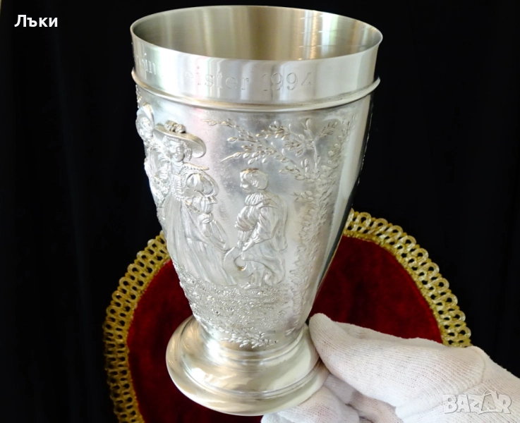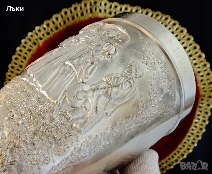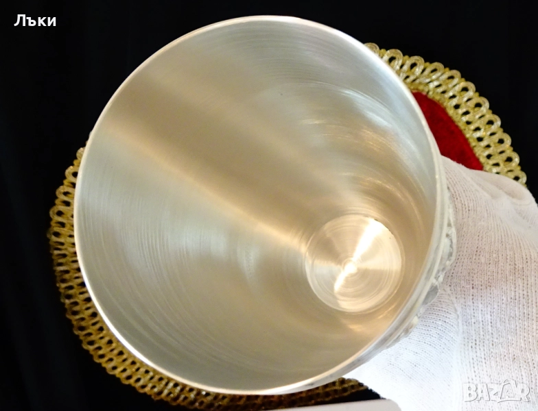 ръчна изработка от 95% калай и 5% сребро,маркирана от производителя.Декорирана