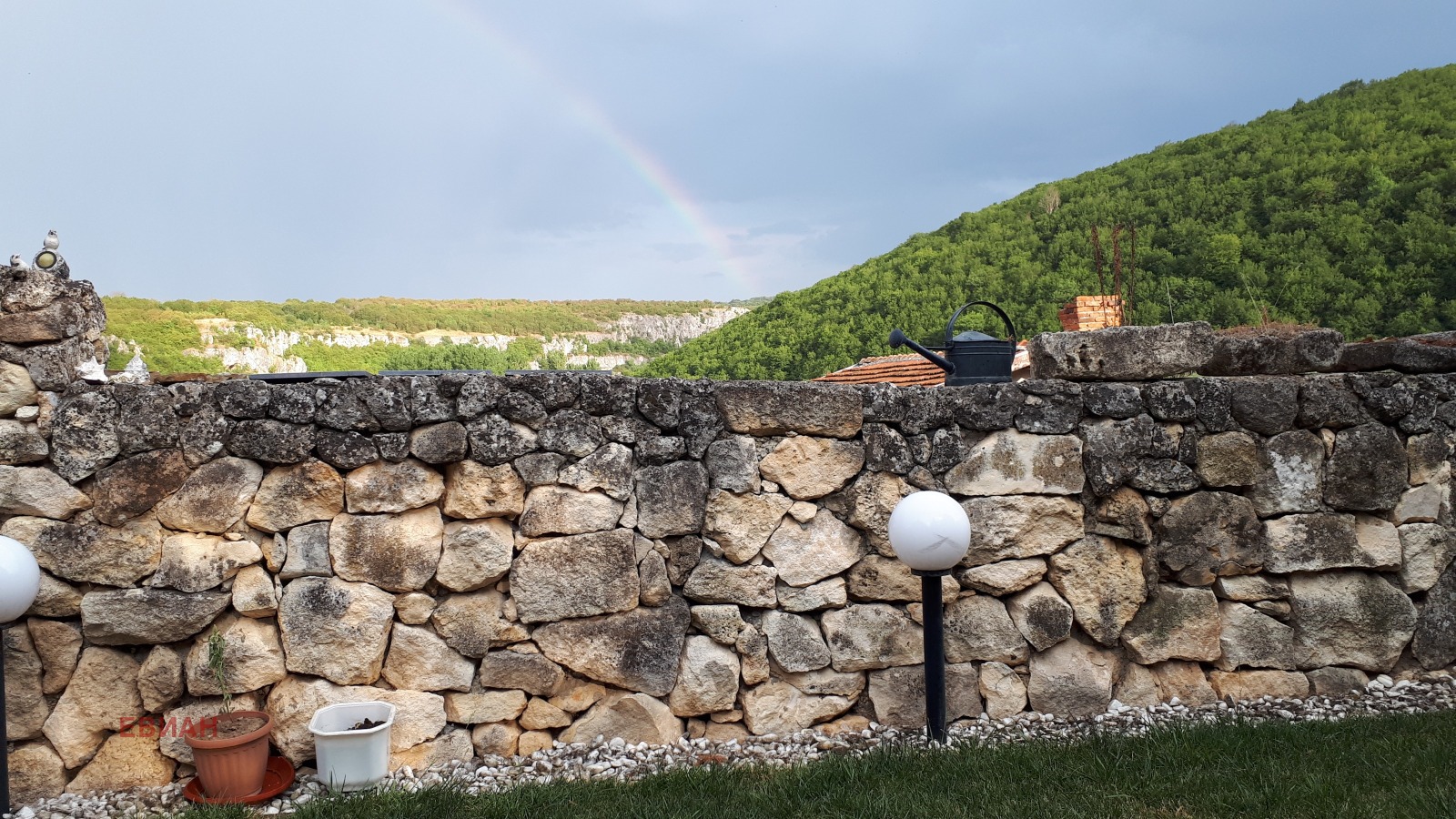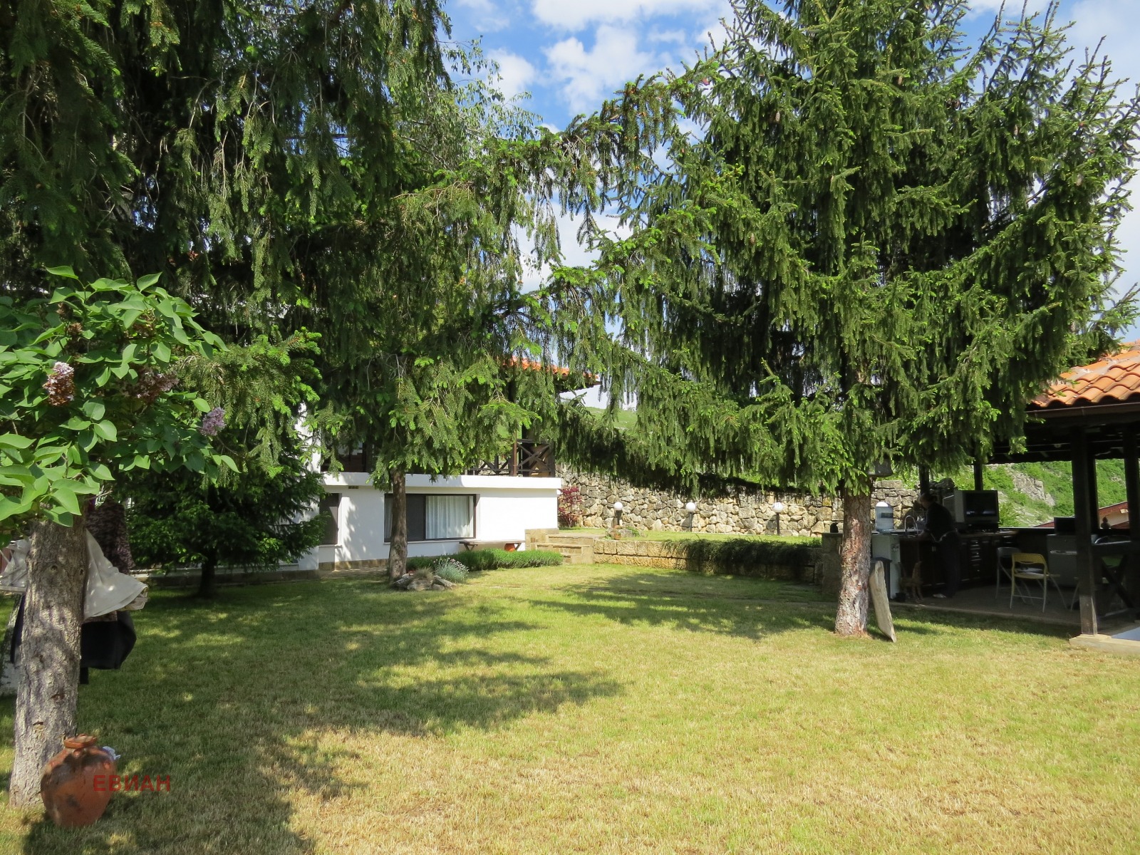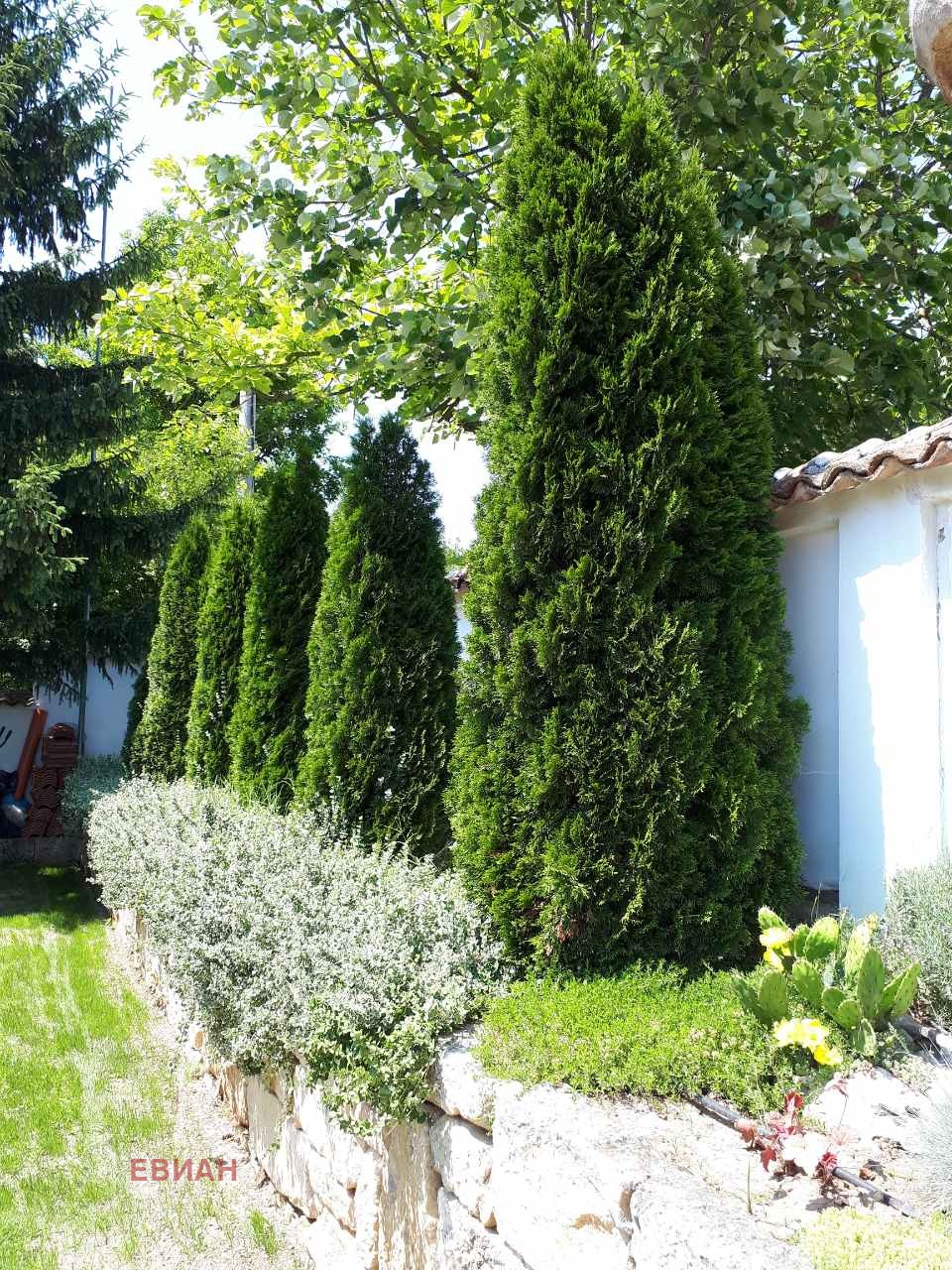 КАМЕННА ОГРАДА ,ИГЛОЛИСТНИ ДЪРВЕТА, ДВЕ ВЪНШНИ ЧЕШМИ, ДЕКОРАТИВНИ ХРАСТИ!