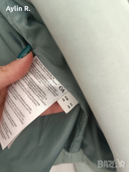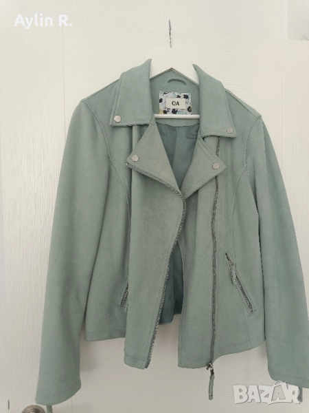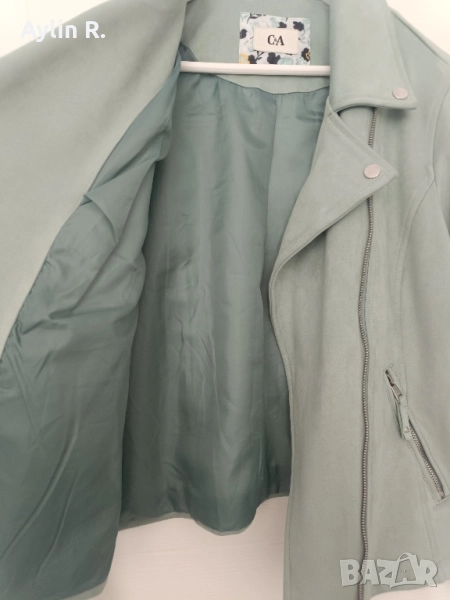 Дамско велурено яке в мента цвят от марката C&A. Използвано броени пъти, в отлично състояние.