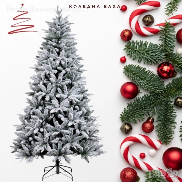 Изкуствена елха K r i n g Melbourne, Цялата заснежена с метална стойка. → Обява 52203059
