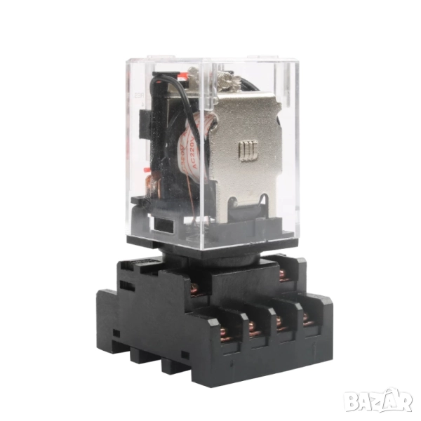Релето е проектирано да превключва товари до 10A и предлага 11 пина за гъвкаво свързване в различни конфигурации. Здравата конструкция и ясно маркираните контакти го правят лесен за инсталиране и използване.