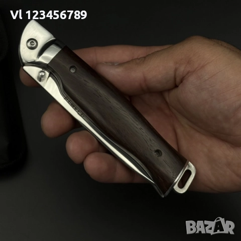 нож с безотказен механизъм за лесно и бързо отваряне и сигурно заключване. Ножът е с премиум качество на изработката и материалите, стоманата 65х13 е с добра твърдост - 56-58HRc, износоустойчива и с много издръжлив режещ ръб. Ножът е с ергономична форма на дръжката и острието, което му дава широкоспектърна употреба за лов, рiболов, къмпинг и туризъм. Класен подарък за всеки ценител.