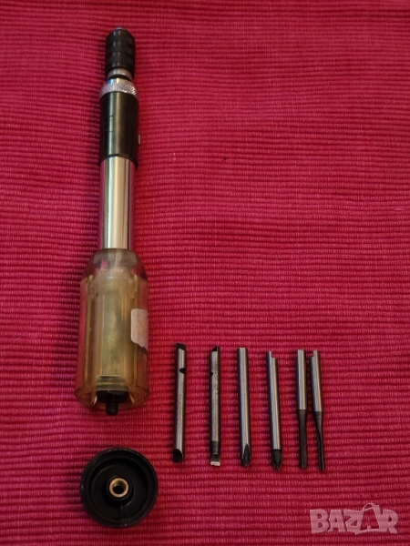 Реверсивна, автоматична отвертка CHRODER W. GERMANY с 6 магнитни накрайника, 4-ри отвертки и 2 свредла за пробиване. Отлично състояние, няма забележки. Еконт, Спиди, лично предаване. Телефон за връзка 0885776829.