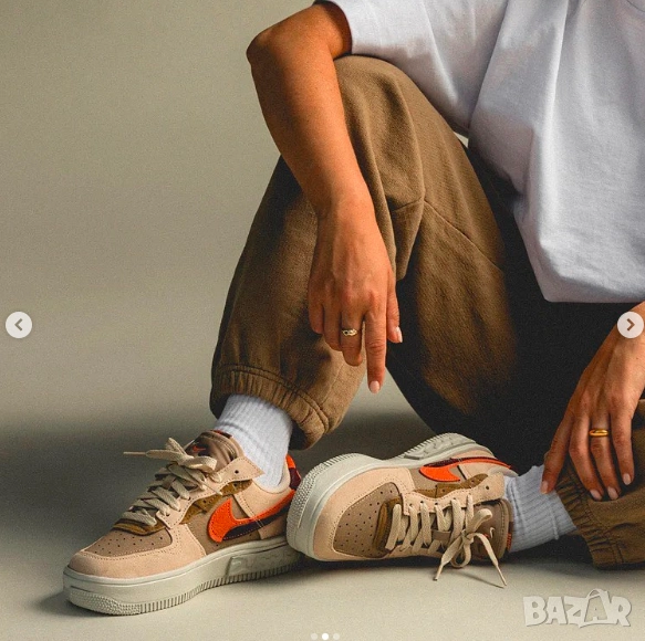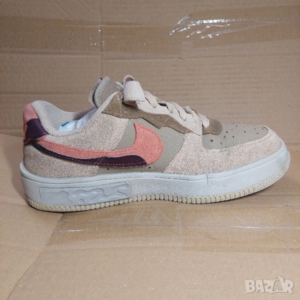 Меката мрежеста яка е в ратан, а в обувката има стелка Burgundy Crush с още надпис Nike Madder Root. Други интригуващи детайли са разпръснати из този дизайн, от произволно разположените перфорации в областта на пръстите до нестандартните шевове и блока от пяна React в междинната подметка. Междувременно, трите лого на езика обединяват три земни нюанса в ратан, Madder Root и Burgundy Crush, за да завършат дизайна.