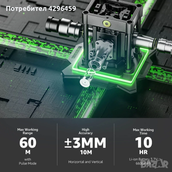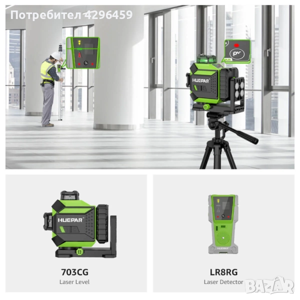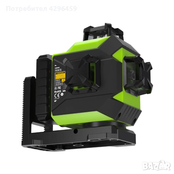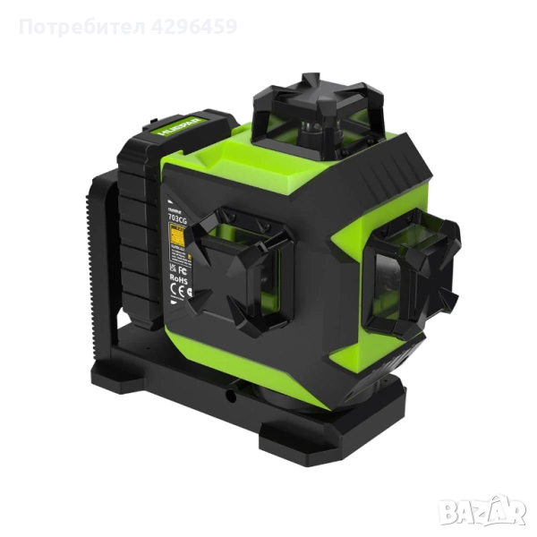 Лазерен нивелир Huepar 703CG е прецизен и надежден измервателен уред, който гарантира отлични резултати при домашни и професионални проекти - полагане на плочки, поставяне на дограма, лепене на тапети и редица други. Една 360-градусова хоризонтална и две 360-градусови вертикални равнини в зелен цвят позволяват на потребителя да покрие пода, стената и тавана из цялата стая. Трите лазерни линии могат да бъдат избрани индивидуално в зависимост от нуждите на задачата. Работният обхват е до 30 метра. Налична е функция за самонивелиране, което се осъществява за няколко секунди, а също така и ръчен режим, за да позиционирате лазерния нивелир под произволен ъгъл, от който се нуждаете. Благодарение на импулсния режим лазерните лъчи са по-слаби, натискът върху очите е по-малък при работа на близко разстояние и времето за работа може да бъде подходящо удължено. Освен това с подходящ приемник той удължава работния обхват до 60 метра. Устройството се захранва от 3.7 V батерия, която осигурява до 10 часа работа. Освен това USB Type-C портът дава възможност за гъвкавост при захранване. Нивелирът е със степен на защита IP54 - удароустойчив, водоустойчив, прахоустойчив, което в комбинация с издръжливия и висококачествен корпус гарантира здравина и надеждност. Той е компактен и лек за лесно хващане, но достатъчно голям, за да стои стабилно и идеален за работа на строителни обекти. Комплектът включва всичко необходимо за незабавна употреба. Доставя се в здрав и удобен за пренаясне пластмасов куфар.