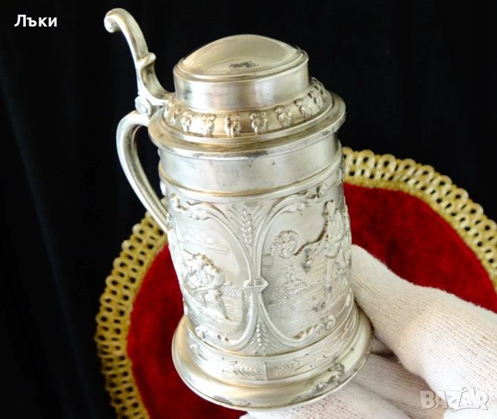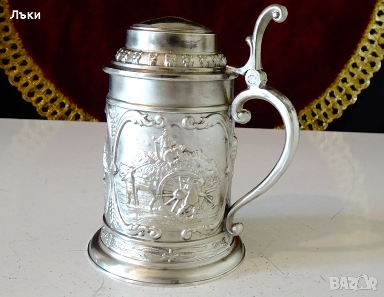 Стара немска калаена халба,майсторска ръчна изработка от 95%